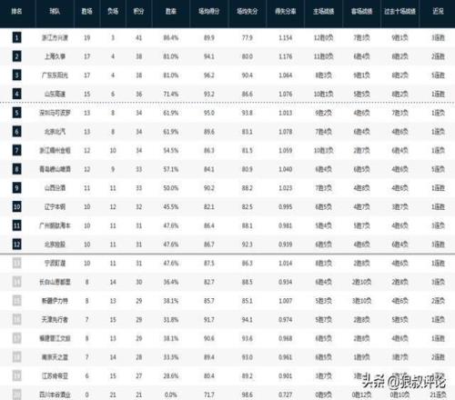 CBA最新排名:广厦捍卫领头羊,山东险胜广州进前4吉林离谱输球